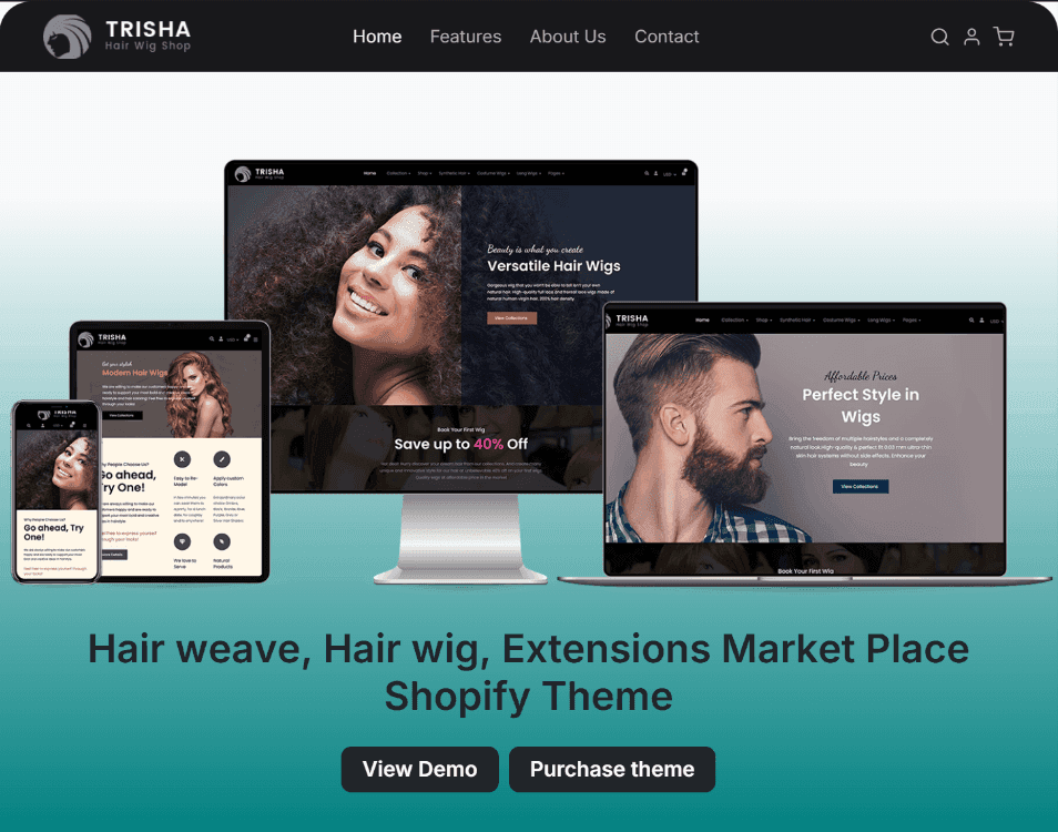 A modern e-commerce redesign for Trisha Hair & Wig Shop, delivering a sleek shopping experience with easy product discovery, seamless navigation, and a stylish brand appeal.